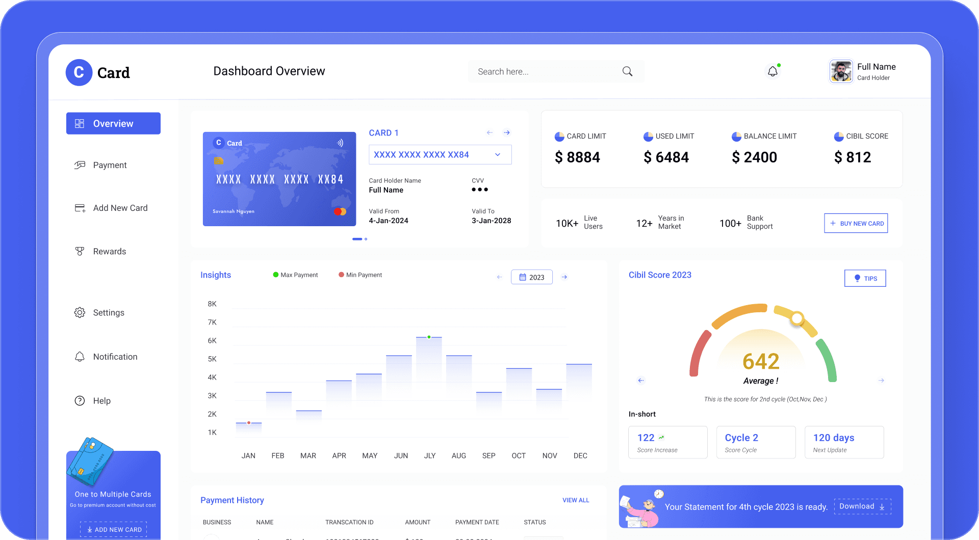 B2C Credit Card Management Dashboard - UI Design